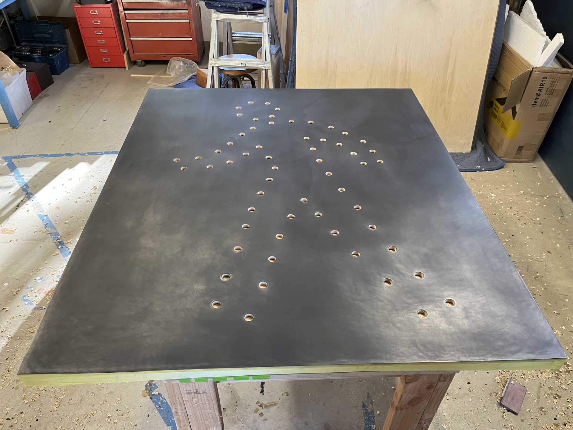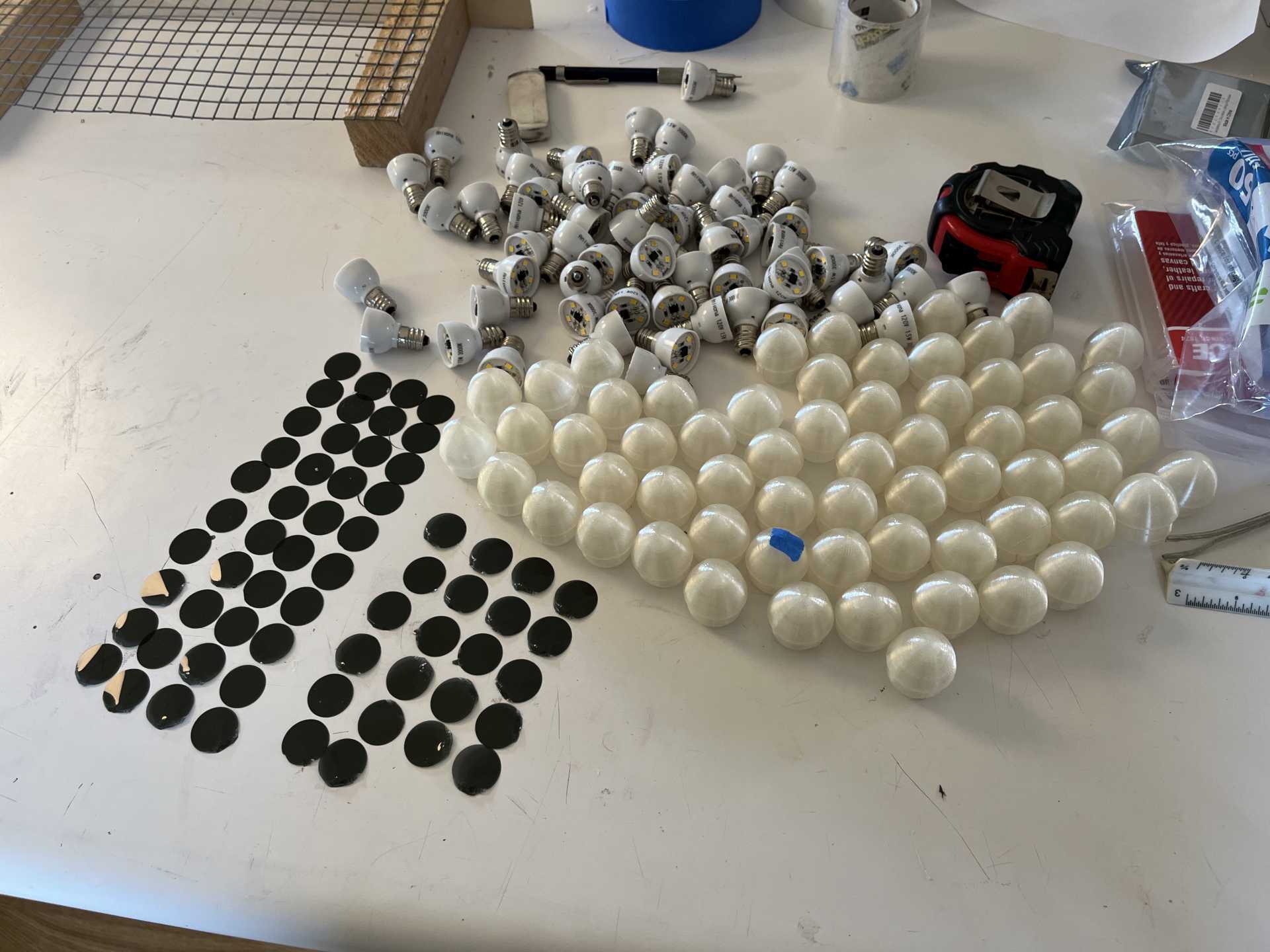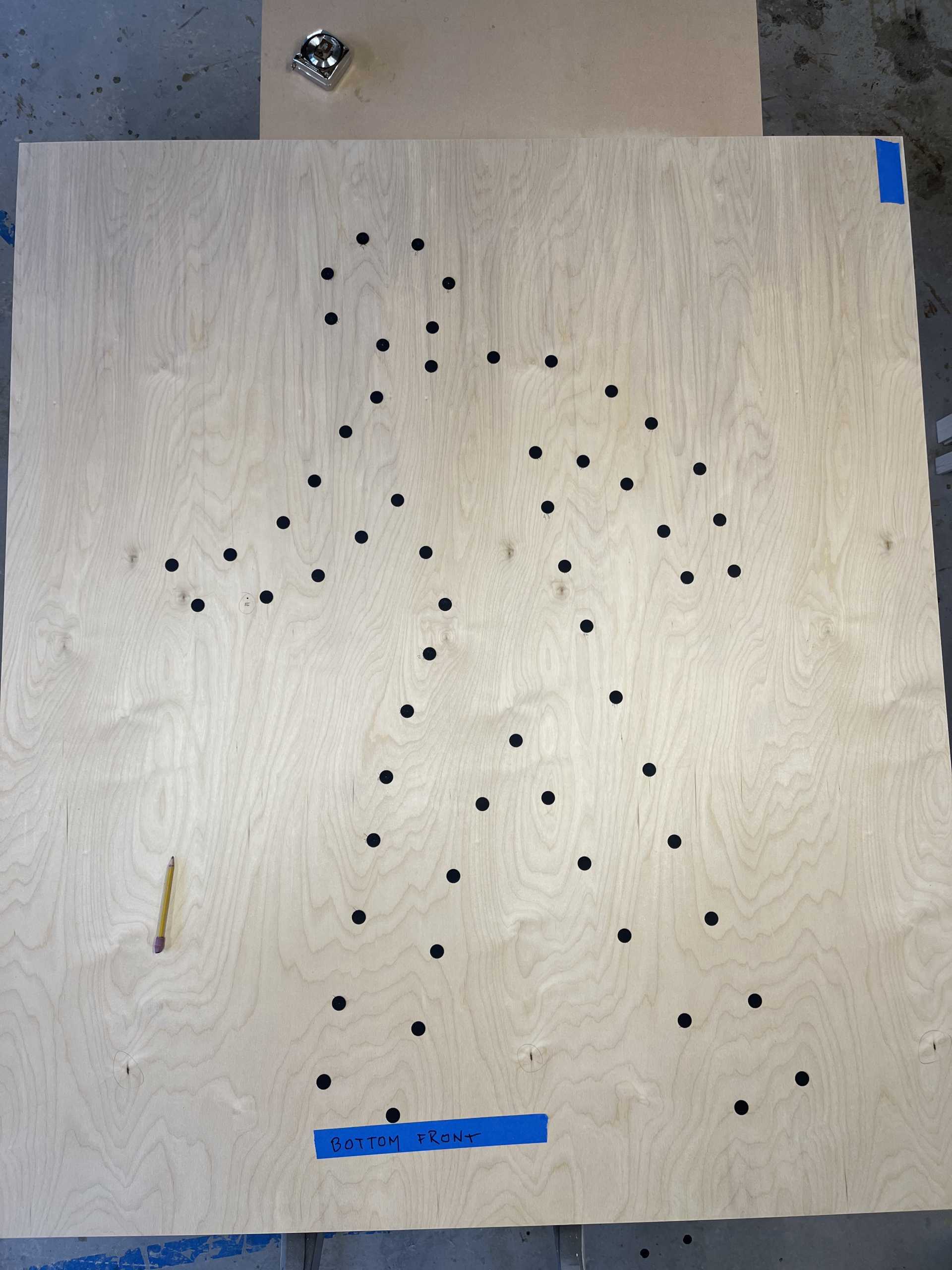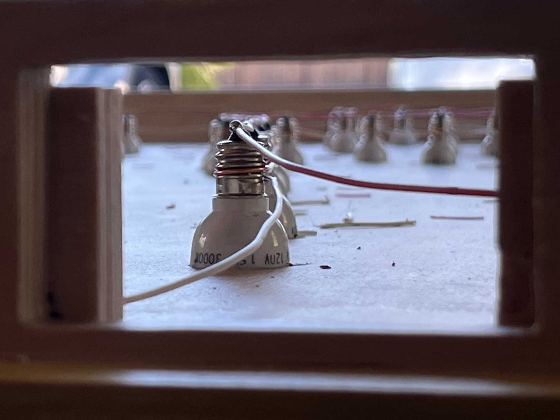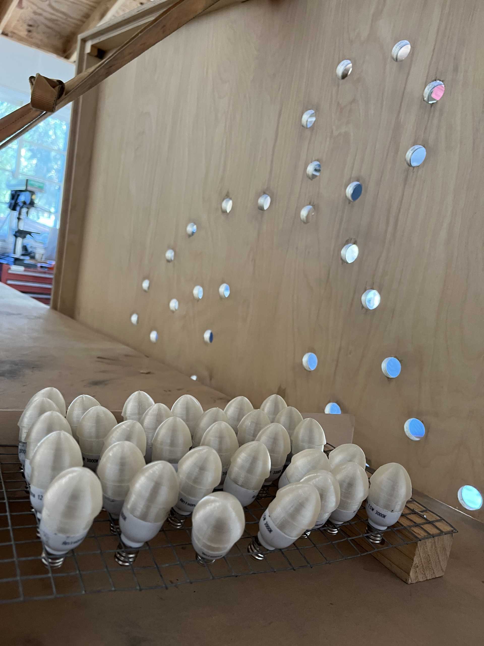 birch plywood, graphite powder and LED bulbs